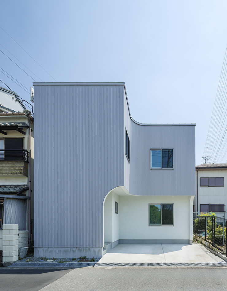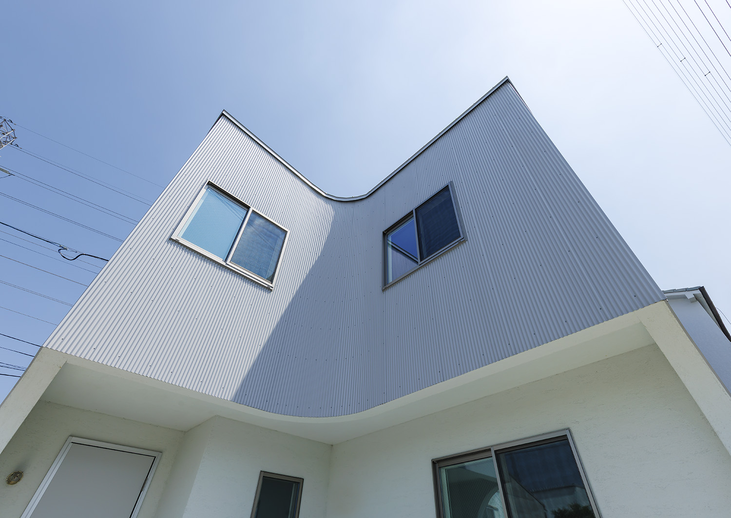 ガルバリウム鋼板の波板を使用して曲面壁を実現しました。