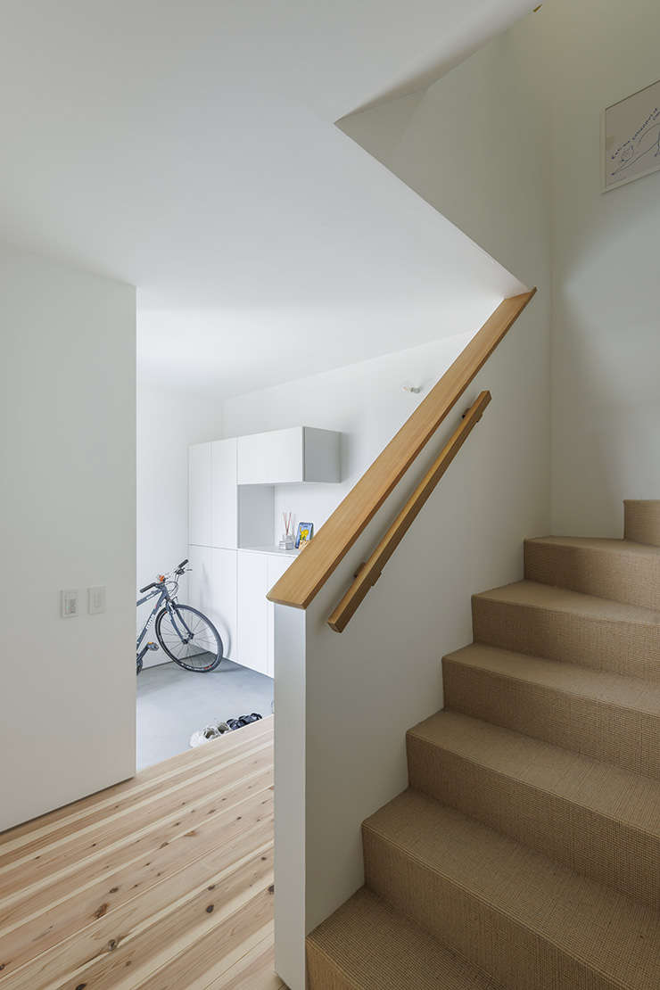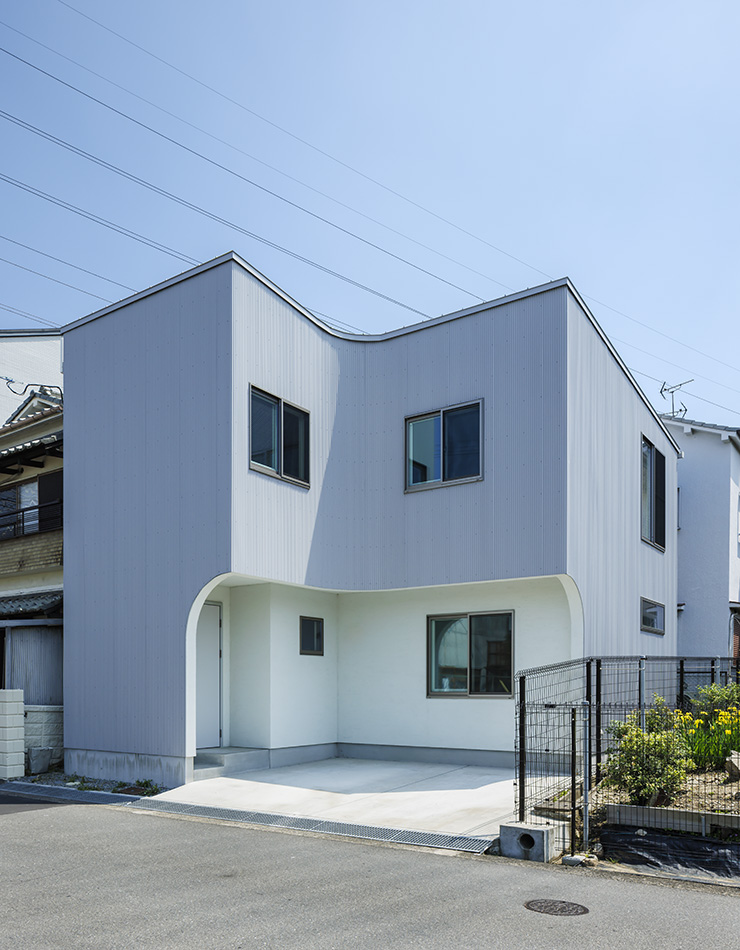 場所は東大阪市宝町、国道から1本入ったすぐの敷地で、前面道路の交通量が多い場所。前面道路の喧騒から逃れるため、そして少しでも光を導くためにメインのLDKを2Fに配置しました。